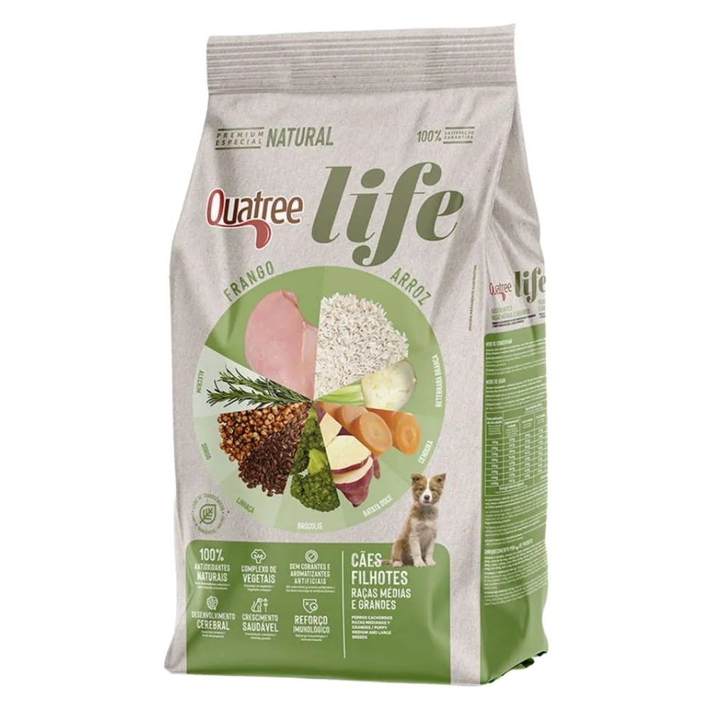 Quatree Life Filhotes Raças Médias e Grandes foi desenvolvido com o objetivo de proporcionar uma alimentação mais saudável para o seu cão.